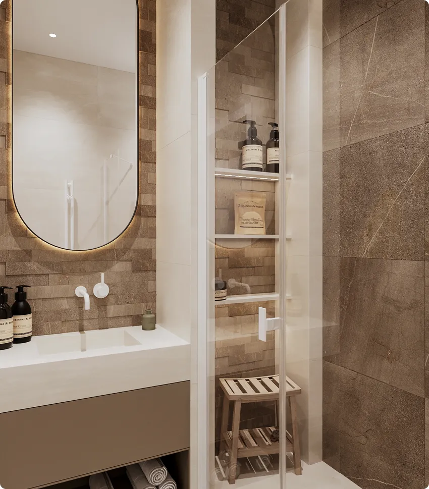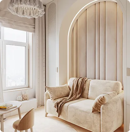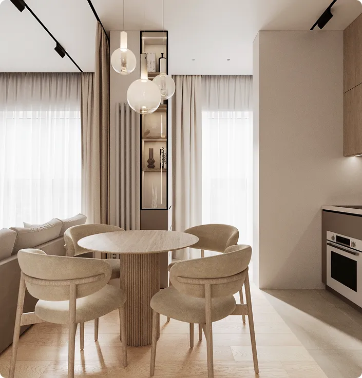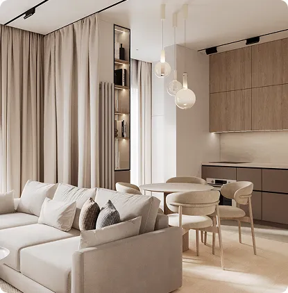 Serene Lines est un intérieur qui allie douceur des lignes, palette neutre et chaleureuse, et fonctionnalité réfléchie. L’espace baigne dans la lumière et le confort, créant une atmosphère idéale pour une vie paisible au rythme de la ville.